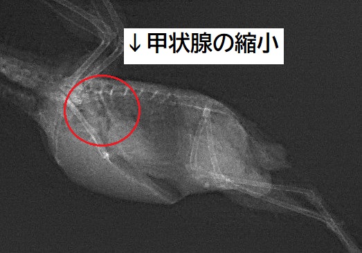 甲状腺腫は腫瘍ではなく、食餌中の甲状腺ホルモンの材料が不足することで、甲状腺ホルモンが産生不足となり、その結果として最終的に甲状腺が肥大する病態です。