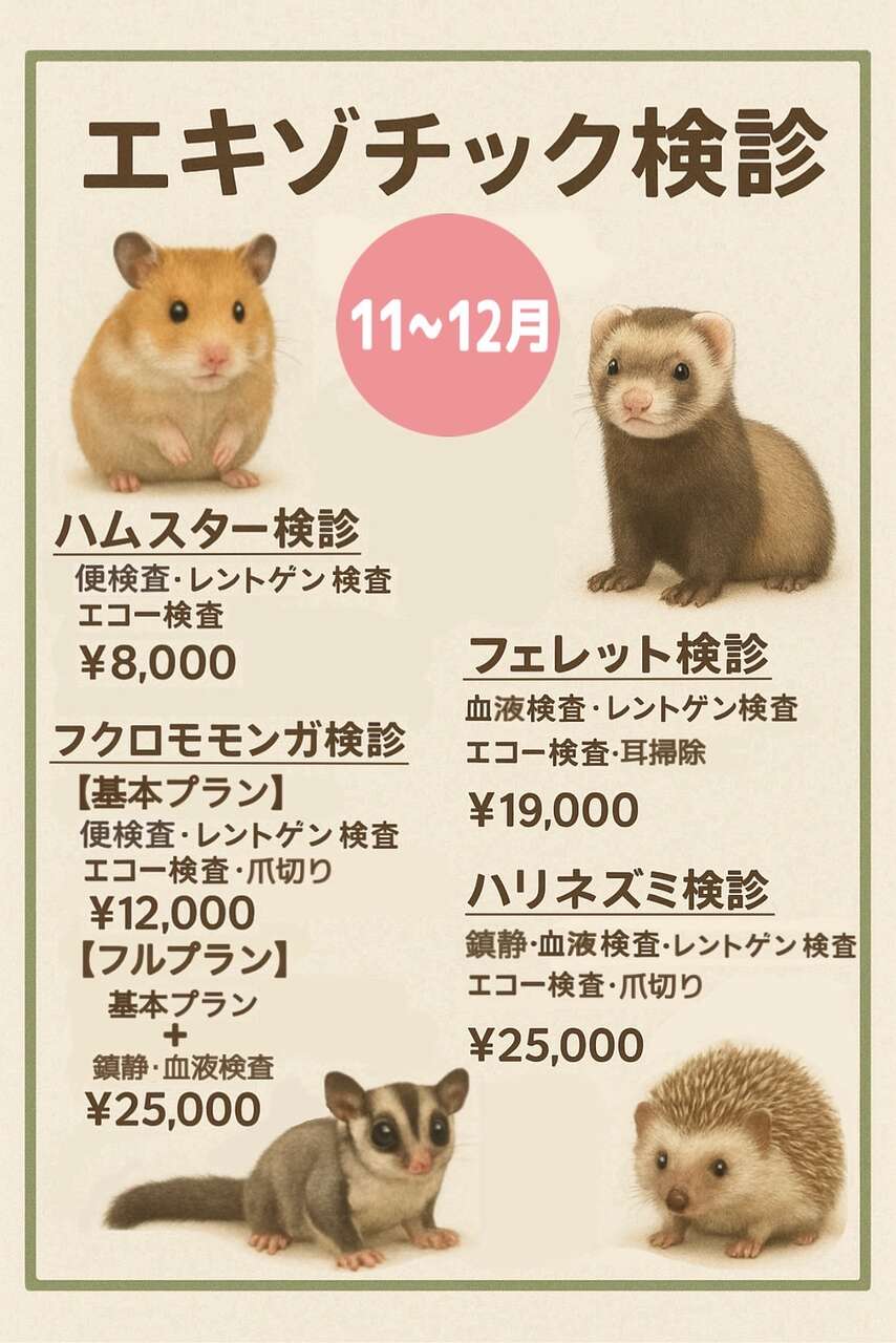 📢11月・12月限定エキゾチックアニマル検診のお知らせ